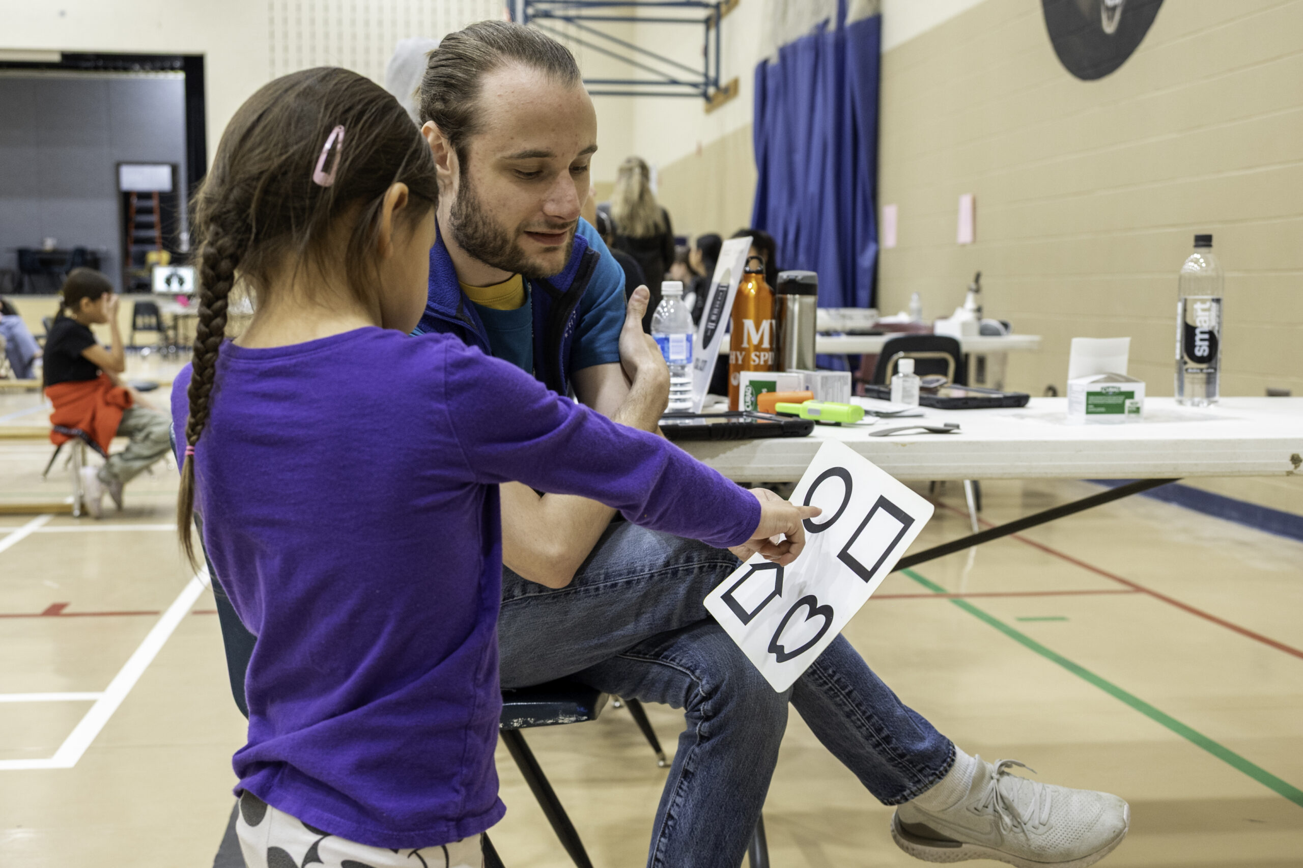 OneSight is primarily situated outside of Alberta, with operations in Ontario and Texas; as such, I acted as the direct, in-person connection who assessed, represented, and advocated for each partner’s needs and goals. In doing so, this meant advocating for the Indigenous voices of Maskwacis Cree Nation to non-Indigenous partners. MESC handled pre-screenings, community engagement initiatives, and the delivery of eye health education, while OneSight provided materials and served as the main service delivery partner. During program development, I travelled to Maskwacis multiple times to meet with MESC to discuss plans for the various activities that would take place before the week-long event in April/May. These discussions ranged from pre-screening results and community feedback to how the Cree language could be integrated into eye health education materials.