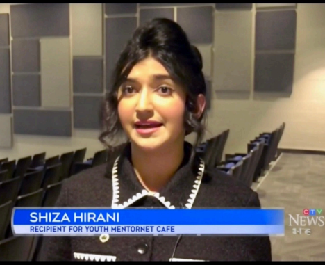 Shiza Hirani is featured in a CTV News interview discussing the achievements of her nonprofit, Youth MentorNet Café, and its role in providing educational support to underserved youth.